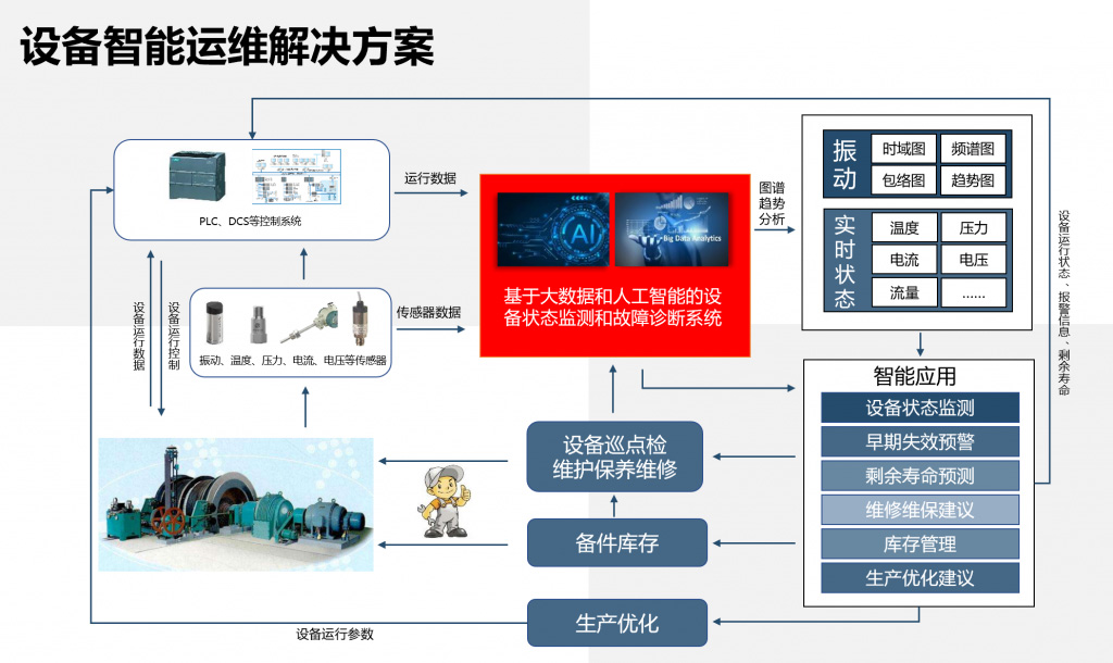 狀態(tài)監(jiān)測 系統(tǒng)系統(tǒng)采集設(shè)備控制器和傳感器的數(shù)據(jù),經(jīng)由先進(jìn)網(wǎng)絡(luò)技術(shù)將數(shù)據(jù)上傳到云端或者本地服務(wù)器,運(yùn)用大數(shù)據(jù)和人工智能算法對數(shù)據(jù)進(jìn)行處理和分析,